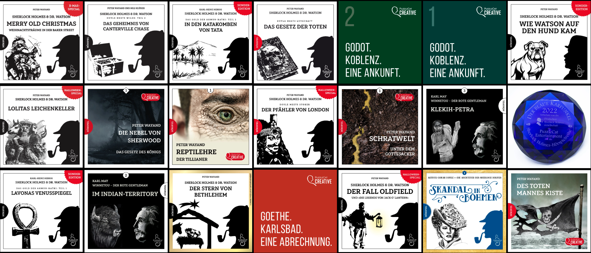 PuzzleCat Entertainment präsentiert regelmäßig neue Abenteuer zum Hören, unter anderem neue Kriminalfälle des Meisterdetektivs Sherlock Holmes und seines Chronisten und Freundes John H. Watson, aber auch Karl-May-Hörspiele und vieles mehr. Alle Hörspiele sind selbst geschrieben, produziert und vertont – mit viel Spaß bei der Sache und immer angetrieben durch das Feedback der Community.